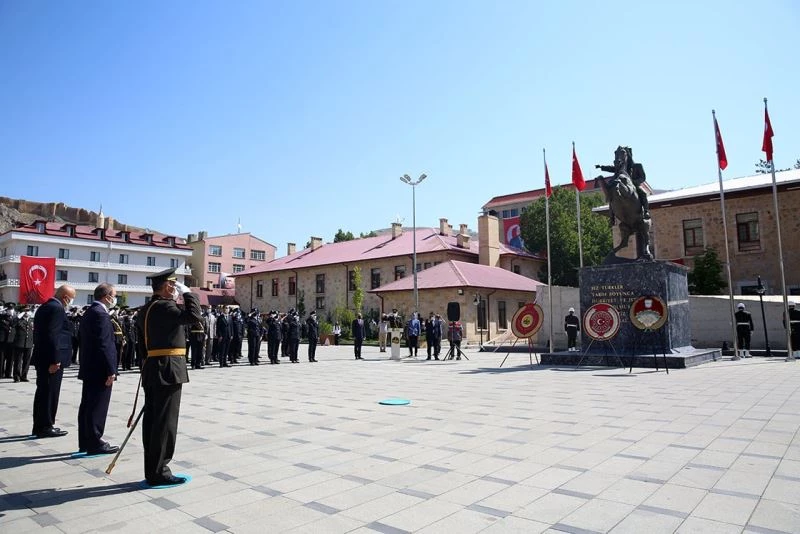 Saray Bahçası’nda gerçekleştirilen kutlamalar, Atatürk Anıtı’na çelenklerin sunulmasıyla başladı. Burada Vali Cüneyt Epcim, Garnizon Komutanı Topçu Albay Zekeriya Tosun ile Belediye Başkanı Hükmü Pekmezci tarafından Atatürk Anıtı’na çelenk sunuldu.