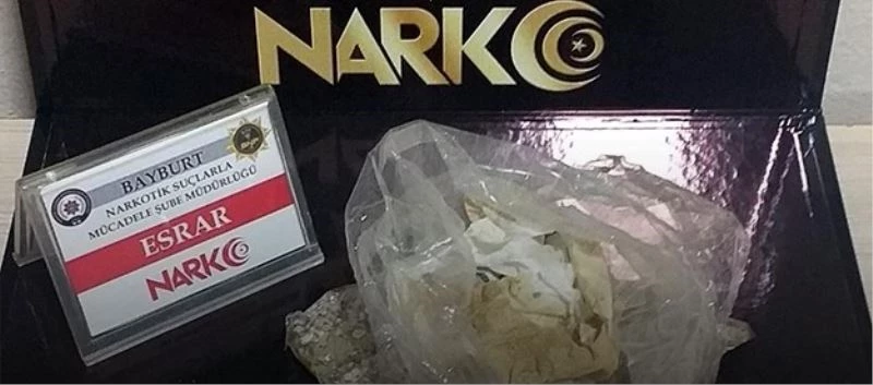 Bayburt Emniyet Müdürlüğü Narkotik Suçlarla Mücadele Şube Müdürlüğü ekiplerince yapılan çalışmada, Bayburt’a uyuşturucu madde getirebileceği değerlendirilmesi üzerine şahısların bulunduğu araç Halfikale Mahallesi Çaykara Yolu Caddesi üzerinde durduruldu. Yapılan incelemelerde 200,77 gram toz esrar ele geçirildi.