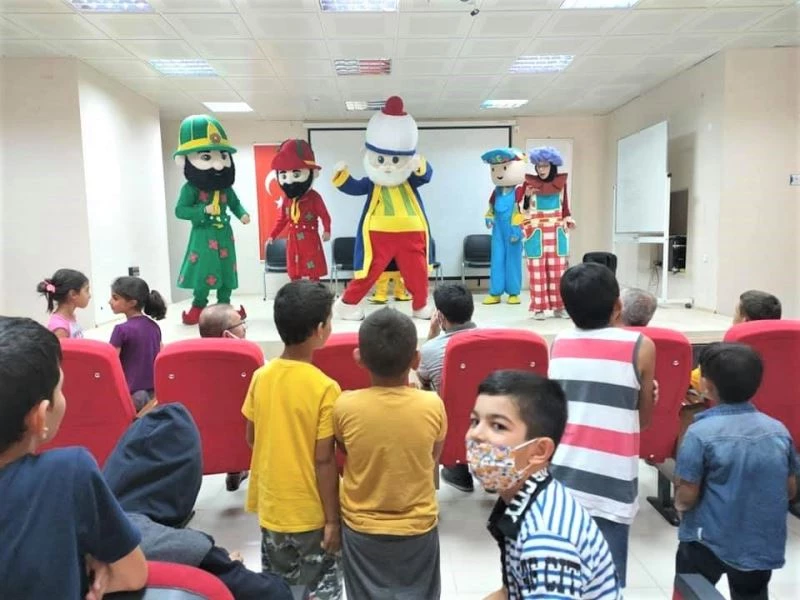 Bayburt’ta "Gülümseyin Geliyoruz; Türk Masal Kahramanları" projesi kapsamında Yakutiye Gençlik Merkezi Tiyatro ve Müzik Kulübü gönüllülerinin gösterileriyle gençler doyasıya eğlendiler.