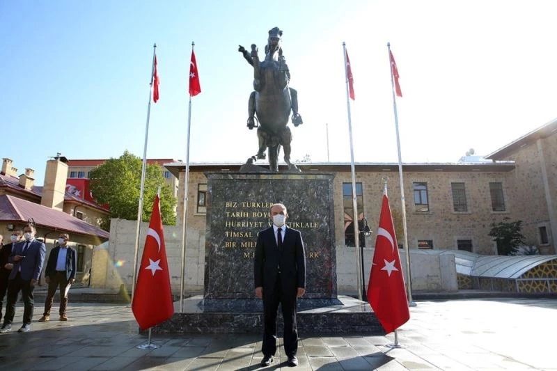 Vali Epcim; korona virüs salgını sürecine de değindiği konuşmasında şu ifadelere yer verdi: “Bugün; vatandaşlarının dayanışma duygusu ve mücadele azminden aldığı güç ile varlığını her alanda hissettiren, bir biri ardına yeni başarılara imza atan devletimiz; bu kudretini yine vatandaşlarının huzur, güven ve refahını artırmak için kullanmaktadır. Dünyamızı etkisi altına alan yeni tip korona virüs salgını sürecinde bu gerçeğe hepimiz çok yakından tanıklık ettik. Dev ekonomilerin belirsizlikler eşliğinde çıkmaza sürüklendiği bir dönemi; Sayın Cumhurbaşkanımız öncülüğünde alınan tedbirler ve atılan adımlarla ülke olarak en az hasarla geçiriyoruz. Devletimiz bu dönemde salgının reel sektörlere etkisini sınırlamak, vatandaşlarımızın refah ve gelir düzeyi üzerindeki olumsuz etkisini bertaraf etmek ve en önemlisi sosyal devlet anlayışının gereği olarak; hiçbir ferdini, üreticisini ve çalışanını sahipsiz ve biçare bırakmamıştır. Süreç nedeniyle çalışanının maaşını ödemekte güçlük çeken işverenine, tarlası tohumsuz kalan çiftçisine ve tüm bunların yanı sıra on binlerce kilometre öteden yardım bekleyen vatandaşına kulak tıkamamıştır. Genç Cumhuriyetimize sahip çıkacak erdemli nesillerin yine kendi bağrından çıkacak evlatlar olduğunu bilerek her bir vatandaşına kayıtsız şartsız kucak açmıştır.”