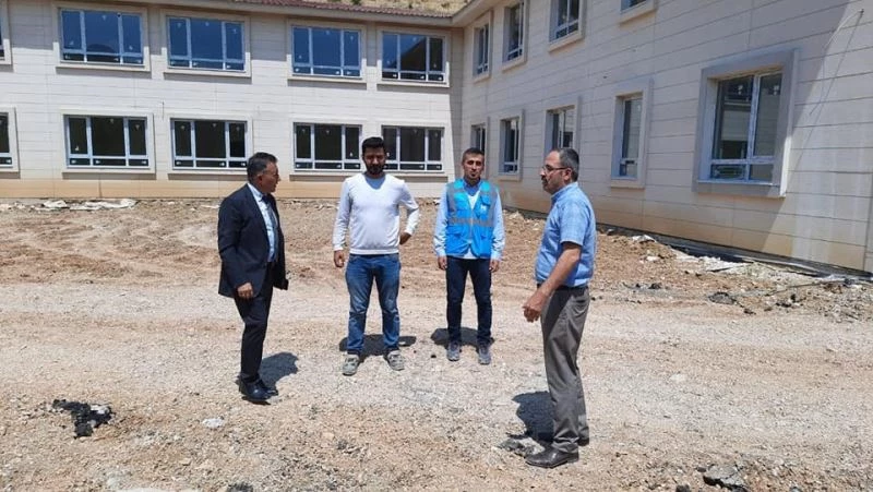 Deprem tahkiki sonucu yıkımına karar verilen ve 2021 yılında TOKİ vasıtasıyla inşa edilmeye başlanan Maden İlkokulu ve Ortaokulu inşaatını inceleyen Güney, İnşaat Emlak Şube Müdürü İsa Akgün’le birlikte okuldaki mevcut tedarikler ve eksikler hakkında bilgi alarak okul binasının ve çevre düzenlemesinin eylül ayına kadar eğitim öğretime hazır duruma getirilmesi talimatını verdi.