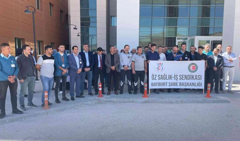 Esenyurt Devlet Hastanesi’nde, güvenlik görevlisi Tuğrul Okudan’ın bıçaklanarak öldürülmesinin ardından Öz Sağlık-İş Sendikası Bayburt Şube Başkanı Murat Şahinoğlu, Bayburt Devlet Hastanesi önünde açıklamalarda bulundu.