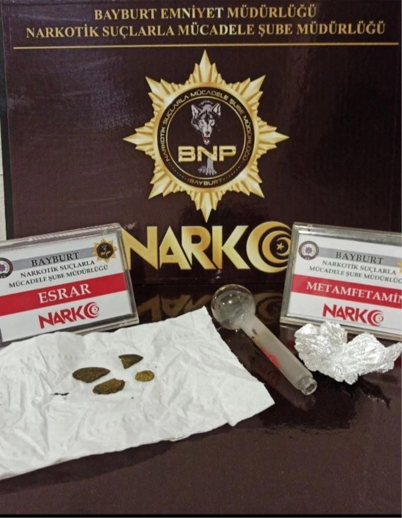 Bu kapsamda M.K., S.G. ve O.O. isimli şahısların, Bayburt’a uyuşturucu madde getirebileceği değerlendirilmesi üzerine şahısların bulunduğu araç uygulama noktasında durduruldu. Yapılan incelemelerde bir miktar plaka esrar ve metamfetamin maddesi ile uyuşturucu içiminde kullanılan “Bong” diye tabir edilen aparat ele geçirildi. Şüphelilerin sorgusu sürüyor.