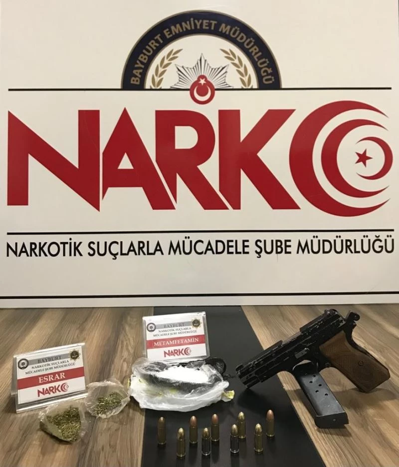 Bayburt’ta Narkotik Suçlarla Mücadele Şube Müdürlüğü ekiplerince yapılan çalışmalarda bir miktar uyuşturucu madde ve ruhsatsız silah ele geçirilirken 2 kişi gözaltına alındı.