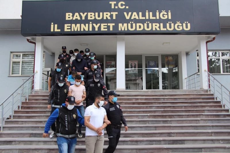 Bayburt Emniyet Müdürlüğü Narkotik Suçlarla Mücadele Şube Müdürlüğü ekiplerince uyuşturucu ve uyarıcı madde ticareti ve kullanımını bertaraf etmeye yönelik yapılan çalışmalar kapsamında gözaltına alınan 9 şüpheliden 5’i tutuklandı.