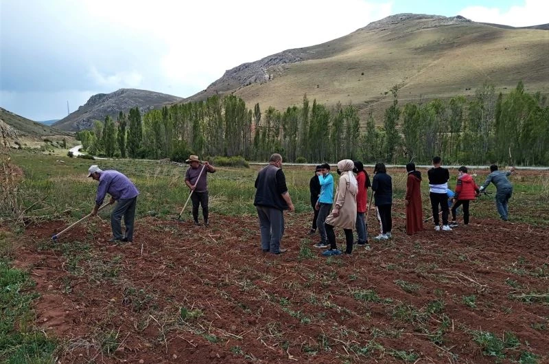 Bayburt’ta yaşlılar ve çocuklar bir araya gelip toprağa hayat verdi
