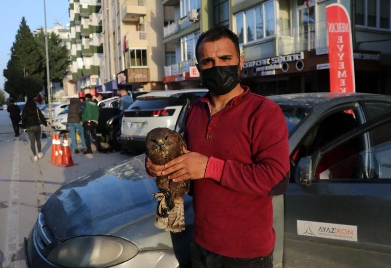 Eren Yarat, Seyhan ilçesine bağlı Karayusuflu Mahallesi’nde otomobiliyle ilerlerken yol kenarında bir şahin olduğunu fark etti. Hemen aracını durdurup şahinin yanına giden Eren Yarat, şahinin baygın olduğunu görünce hemen korkup uçmasın diye ayaklarını iple bağlayıp aracının ön koltuğuna aldı.