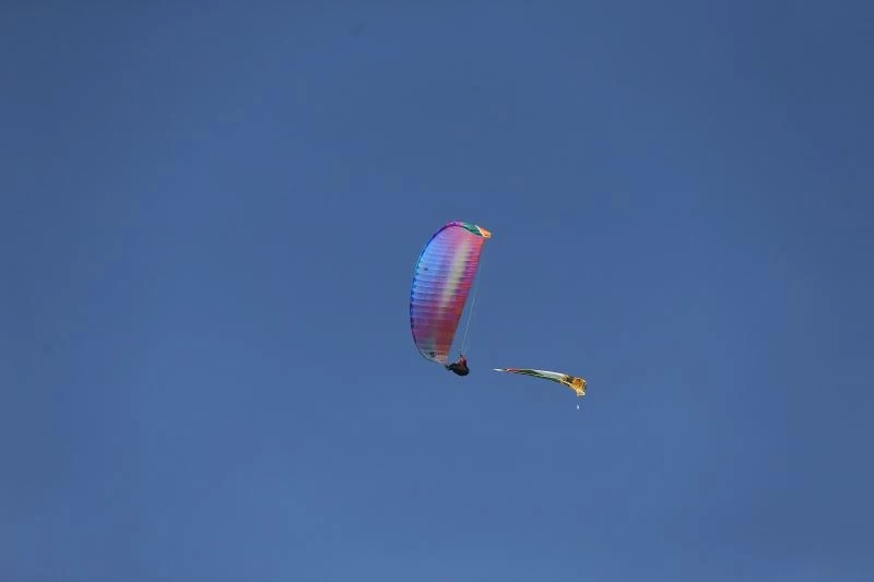 Uludağ’ın eteklerindeki tarihi Zeyniler Köyü’nün paraşüt pistinden havalanan İbrahim Dinçer ve oğlu Kerem Dinçer paraşütleri ile Filistin ve Türk bayrakları açarak Kudüs Günü’ne dikkat çekti.