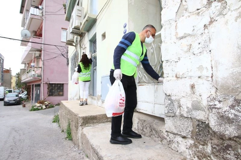İzmir’de Bayraklı Belediyesi, Ramazan ayı boyunca 10 bin kişilik iftar yemeği dağıtacağını belirtirken, vatandaşların evlerinin zillerini çalan ekipler, Ramazanın ilk gününde 500 kişiye iftar menüsü ulaştırdı.