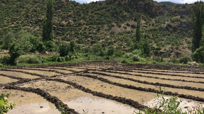 Irak sınırındaki Çukurca ilçesinin Emir Şaban Mahallesi’nde imece usulü çeltik ekimine başlanıldı. İlçede çiftçilikle uğraşan Sıtar Ayar, bölgede en büyük geçim kaynağı olan yerli ata tohumundan olan çeltik ekmeye başladıklarını söyledi. Tamamen yerli ve milli tohum kullandıklarını belirten Ayar, çeltik ekilen tarlalara doğal hayvan gübresi kullanacaklarını kaydetti. Son zamanlar bölgede en çok rağbet gören ürünün çeltik ve susam olduğunu dile getiren Ayar, her iki ürünün de meşakkatli süreçlerden geçtiğini söyledi.