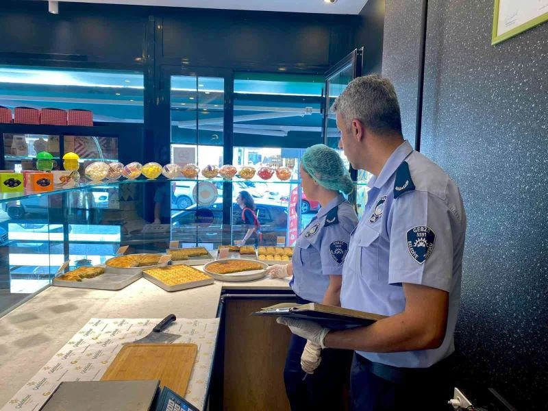 Gebze’de zabıta ekipleri Kurban Bayramı öncesi tatlı üretimi ve satışı yapılan işletmeleri denetledi.
