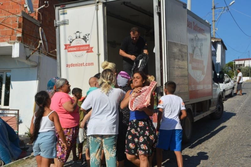 Yalçın, firmasına ait özel soğutuculu aracı ve iki personeliyle tamamı İvrindi kuzusundan oluşan et dağıtımına bizzat katılarak gönüllerde taht kurdu.