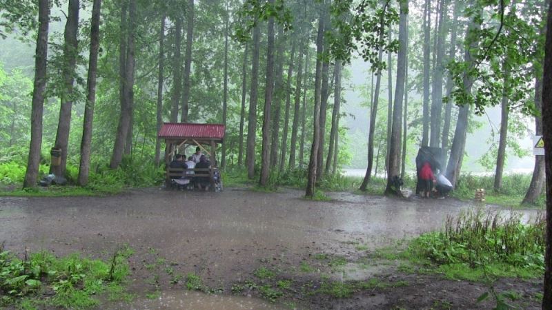 Artvin’de her mevsim ayrı güzelliğe bürünen Borçka ilçesindeki Karagöl, kurban bayramında ziyaret akınına uğradı. Bayram tatilini gölde geçirmek istenler sağanak yağış sürpriziyle karşılaştı.