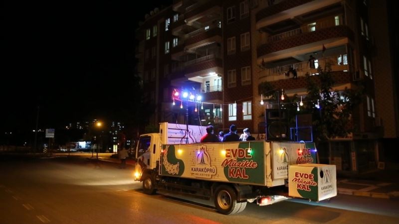 Karaköprü Belediyesi, korona virüs tedbirleri kapsamında evde kalan vatandaşlar için Ramazan ayı boyunca mobil programlar gerçekleştirirken, Ramazan Bayramı’nda da vatandaşları unutmadı. Belediye, mobil etkinlik aracı ile sokağa çıkma kısıtlaması nedeniyle bayramı evde geçiren vatandaşlar için konser düzenledi. İlçedeki cadde ve sokaklarda gezen mobil konser aracında sanatçı Mustafa Sarıdoğan ve saz ekibi birbirinden güzel şarkılarla evinin balkonuna ve pencerelere çıkan vatandaşlara müzik şöleni sundu. Vatandaşlar mobil araç konser dinletisine balkonlarından ve pencerelerinden alkışlarla eşlik etti.