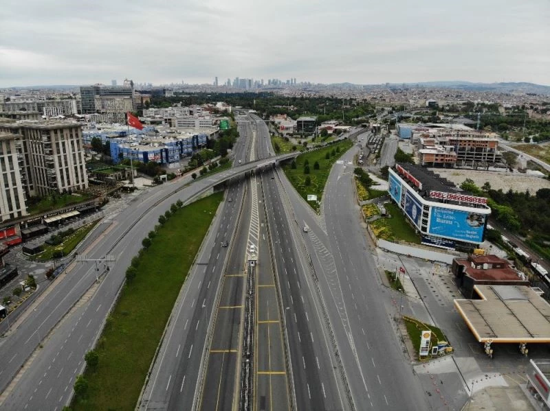 Korona virüs tedbirleri kapsamında Ramazan Bayramının ikinci gününde sokağa çıkma kısıtlaması nedeniyle İstanbul’da yollar boş kaldı. Duraklarda bekleyen vatandaşların olduğu görülürken E5 Karayolu’ndaki sessizlik drone ile havadan görüntülendi.
