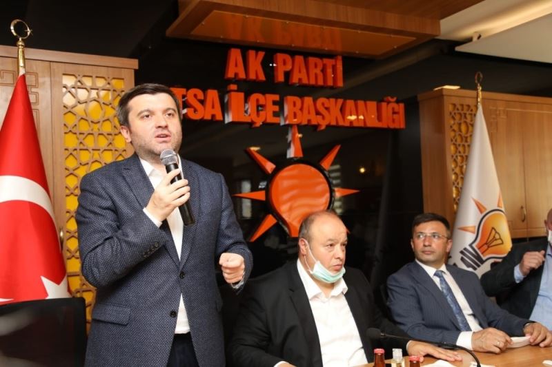 Bayramlaşmanın açılış konuşmasını yapan AK Parti İlçe Başkanı İsa Yüksel, genel merkezin talimatları gereği daraltılmış bir bayramlaşma gerçekleştirdiklerini belirterek, “Bizler AK Parti mensupları olarak teşkilatımızın ve halkımızın hizmetkarı olarak birlik ve beraberliğimizi bu tür bayramlarda bakanımızla, milletvekilimizle ve partimizin tüm kademeleri ile muhafaza etmek zorundayız. Sayın Cumhurbaşkanımızın bizlerin önüne koymuş olduğu 2023, 2053 ve 2071 hedeflerine bu teşkilatlarımızı daha güçlü ve sağlıklı ulaştırmak için bu birlik ve beraberliğimize muhafaza etmek durumundayız” dedi.