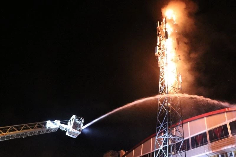 Kocaeli’nin Derince ilçesinde GSM şirketlerinin baz istasyonunun direği alev alev yandı. İtfaiye ekiplerinin müdahalesi ile söndürülen yangın sırasında panik yaşayan vatandaşlar, evlerinin balkonlarından olayı cep telefonları ile görüntülemeye çalıştı.