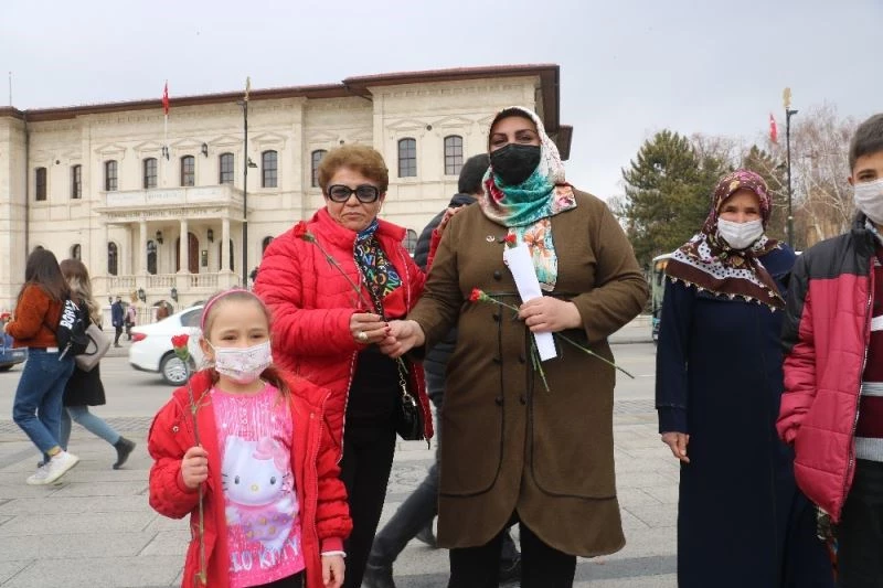 Sivas’ta Büyük Birlik Partisi (BBP) İl Kadın Kolları Başkanlığı üyeleri 8 Mart Dünya Kadınlar Günü kapsamında kadınlara çiçek dağıttı.