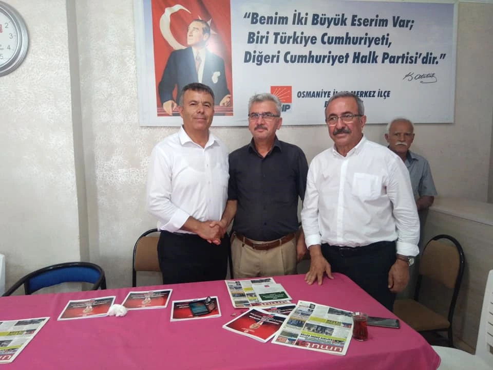 Ahmet Kara`ya CHP rozeti takma törenin de CHP Osmaniye Mİlletvekili Baha Ünlü ve İl Başkanı Nedim Ünlü`de hazır bulundu.