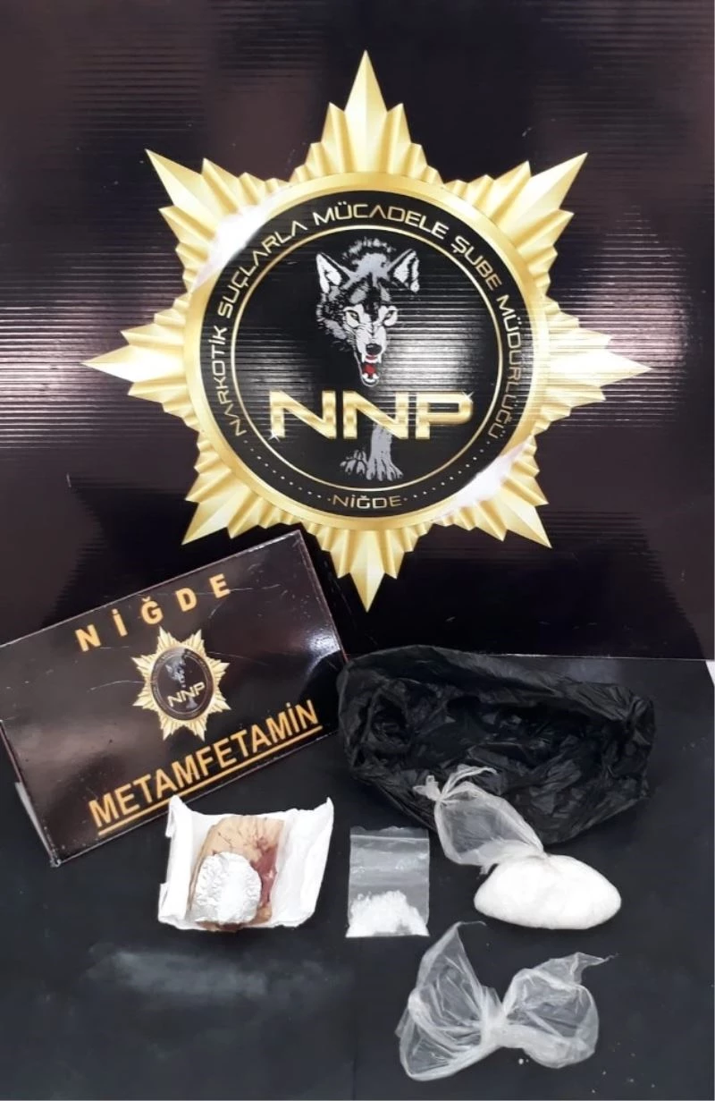 Niğde İl Emniyet Müdürlüğü Narkotik Suçlarla Mücadele Şubesi ekipleri, Niğde-Adana Otoyolu Eminlik gişelerinde şüphe üzerine bir aracı durdurdu. Narkotik köpeği ile yapılan aramada, otomobilde bulunan F.H.’nin kucağındaki bebeğin battaniyesinin içinde 98,56 gram metamfetamin ele geçirildi.