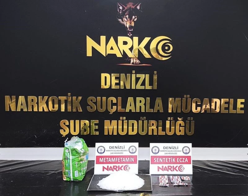 Denizli İl Emniyet Müdürlüğüne bağlı ekipler, bir kadının otobüs ile uyuşturucu madde getirip satacağına dair bilgi aldı. Harekete geçen ekiplerin takip ettiği kadın Denizli otogarında otobüsten inerek alışverişi yapacağı kişinin yanına gitti. Tam o esnada polis ekipleri operasyonu gerçekleştirerek şüphelileri suçüstü yakaladı. Şüphelilerin üzerinde ve evlerinde ekipler tarafından arama gerçekleştirildi. Kadın şüphelinin çantasında arama yapan ekipleri, bebek bezi içerisinde zulalanmış halde 1 kilogram metamfetamin maddesi ve 37 adet uyuşturucu hap ele geçirdi. Gördüğü manzara karşısında ekipler hayrete düşerken, Uyuşturucu Madde Ticareti Yapmak adli makamlara sevk edilen 2 şüpheli tutuklandı.