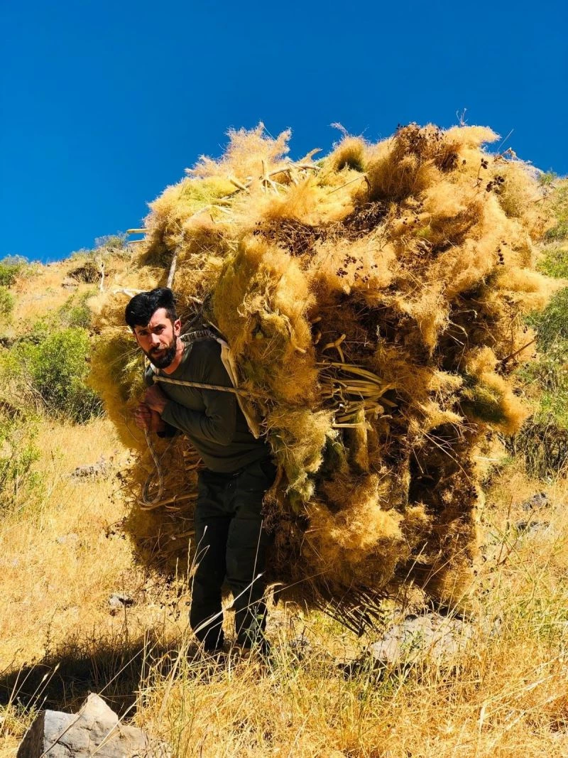 Helizler insan gücüyle toplanıyor, toplayan vatandaşlar cüsselerinin 6-7 katı büyüklüğünde 70-80 kilogram ağırlığında ot yığınlarını sırtlarında 200 metre taşıyarak istiflenen bölgeye getiriyor. Hayvancılık ile uğraşan, Ramazan Babat, "Her bahar ve yaz heliz otlarını biçip topluyoruz, hayvanlarımız heliz bitkisini çok seviyor, yazın depolayıp kışın hayvanlarımıza veriyoruz. Biçtikten bir ay sonra toplamaya başlıyoruz cüsse olarak bedenimizin 6-7 katı büyüklükte helizleri 200 metre bazen 300 metre götürüyoruz. Sırtımıza aldığımızda ağırlıktan bacaklarımız titriyor helizlere bağladığımız ipler sırtımızı omzumuzda iz bırakıyor” dedi.