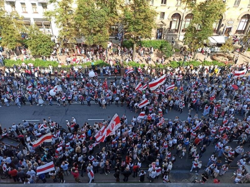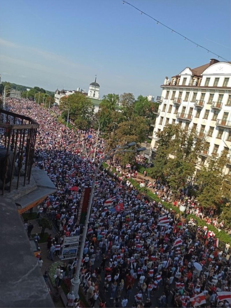 Belarus’ta 9 Ağustos’ta gerçekleşen seçimleri 26 yıldır başkanlık koltuğunda oturan Aleksandr Lukaşenko yine kazanınca muhalefet sokağa indi. Seçimlerden beri sokaklardan çekilmeyen muhalefet üyeleri, bu hafta sonu yine başkent Minsk’te büyük bir miting için çağrı yaptı. Aleksandr Lukaşenko’nun istifasını isteyen ve seçimlerin yenilenmesini talep eden binlerce kişi caddeleri doldurdu. Bağımsızlık Meydanı’nda toplanmak üzere yürüyüşe geçen muhalefet üyelerinin yolları barikatlarla kesildi. Belarus İçişleri Bakanlığının dün Bağımsızlık Meydanı’nın kapatılacağına yönelik duyurusuna aldırış etmeyen kalabalık yürüyüşü durdurmayınca polis müdahale etti. Birçok kişi barikatları geçerek meydana ulaşmaya çalışırken, bazı protestocular barikatların önüne yattı. Polisin cop kullandığı olaylarda göstericiler ara sokaklara kaçtı. Minsk sokaklarında gerilim aralıklarla devam ederken, kitlenin birçoğunun dağıldığı ve mitingin iptal edildiği öğrenildi. Gözaltılarla ilgili ise şu ana kadar net bir rakam verilmezken, polisin Bağımsızlık Meydanı çevresindeki güvenlik önlemlerini almaya devam ettiği görüldü.