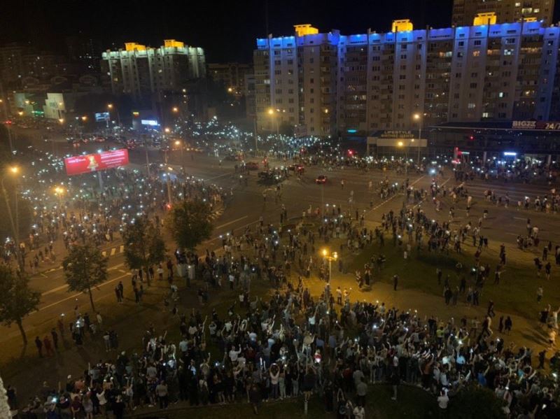 Devlet Başkanı Aleksandr Lukaşenko’nun seçimi kazanmasının ardından başkent Minsk’te bulunan zafer anıtı önünde toplanan yaklaşık 300 kişi seçim sonuçlarını protesto etmeye başladı. 21:30’da 300 kişi ile başlayan protestolar bir anda ülkenin hemen hemen her yerine sıçradı. Gün içinde internet ve elektrik kesintilerini bahane eden göstericiler tamamlanan seçimlerin hileli olduğunu savundu. Minsk sokaklarında başlayan protestolar büyüyünce polis ve asker sokaklara inerek protestoların önüne geçmeye çalıştı.