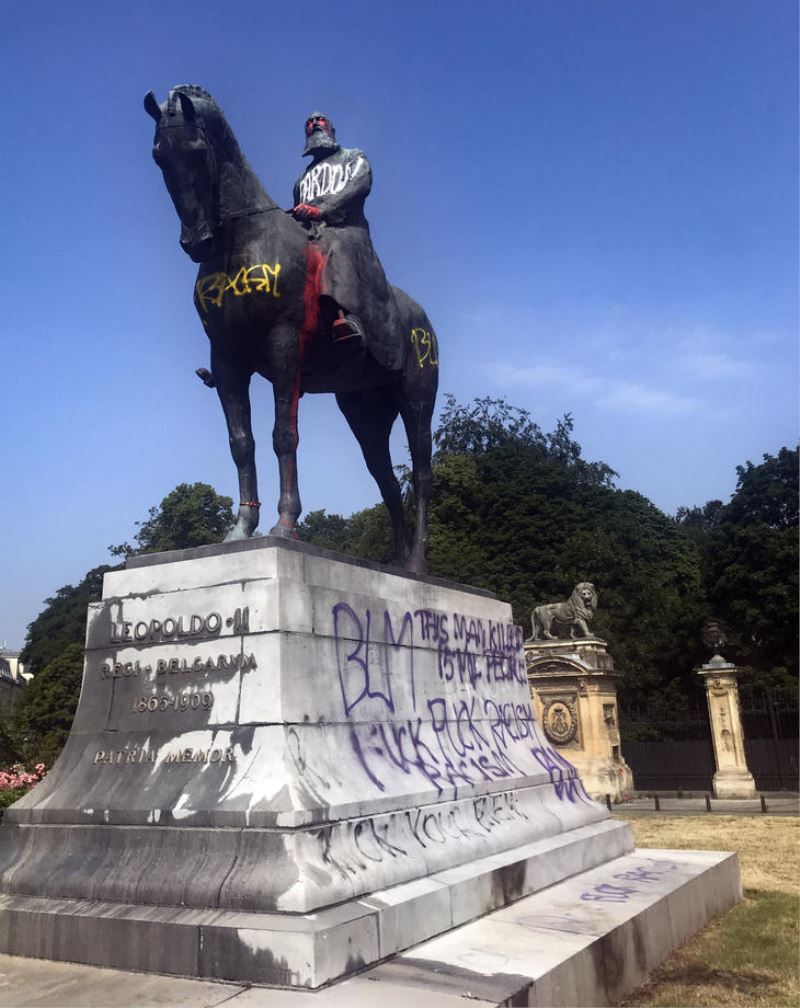 Belçika’nın başkenti Brüksel’de sömürgeci Kral 2. Leopold’un heykeli tahrip edildi. Heykelin üzerine "Bu adam 15 milyon kişiyi katletti", "Siyahilerin hayatı önemlidir", "Katil", "Özür dileriz" yazıldı.
