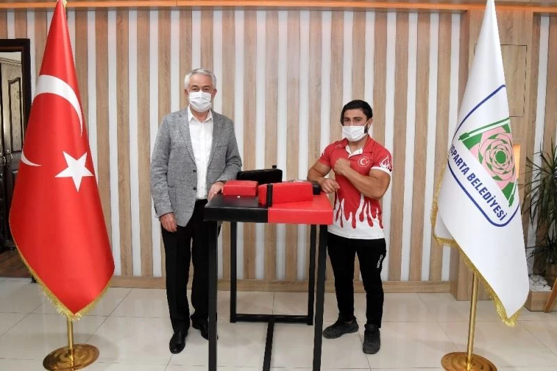 Ziyaretin ardından Belediye Başkanı Şükrü Başdeğirmen, Dönmez’i başarılarından dolayı altınla ödüllendirirken, müsabakalara daha iyi hazırlanabilmesi amacıyla antrenman masası hediye etti. Mehmet Dönmez’in bilek güreşinde, Isparta’yı ve ülkemizi en iyi şekilde temsil eden milli bir sporcu olduğunu söyleyen Belediye Başkanı Şükrü Başdeğirmen şunları söyledi: