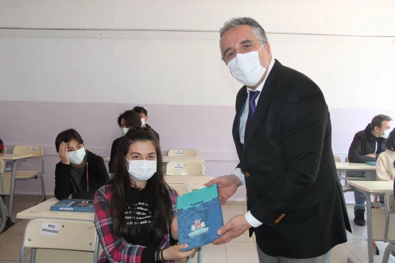 Nevşehir Belediyesi tarafından devlet okullarında üniversite sınavlarına hazırlanan 12.sınıf öğrencilerine üniversiteye hazırlık deneme sınav seti dağıtıldı.