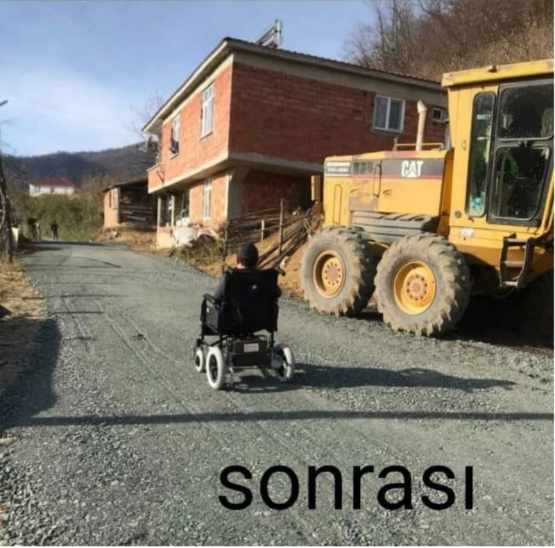 Öte yandan, yağışlı havalar sonrasında çamur dolayısıyla dışarıya çıkamayan Mürsel Kaya’nın engelli çocuğunun yol yapım çalışmalarının başlamasıyla birlikte büyük bir mutluluk yaşadığı gözlemlendi.
