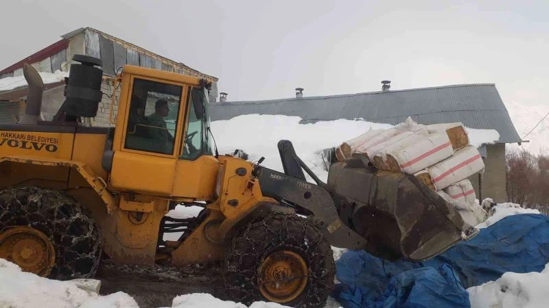 Hakkari’nin Yukarı Merzan Mahallesi’nde araçlar çıkamadığı için çiftlikte aç kalan hayvanlar için belediye ekipleri seferber oldu.