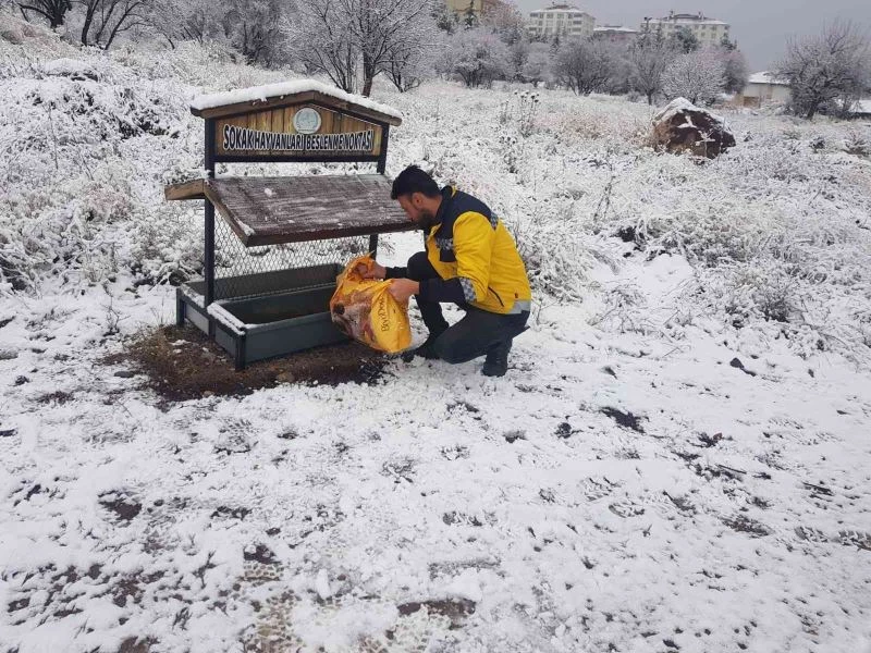 Nevşehir’de kar yağışı ve soğuk hava nedeniyle yiyecek bulmakta zorlanan sokak hayvanlarına Nevşehir Belediyesi sahip çıkmaya devam ediyor.
