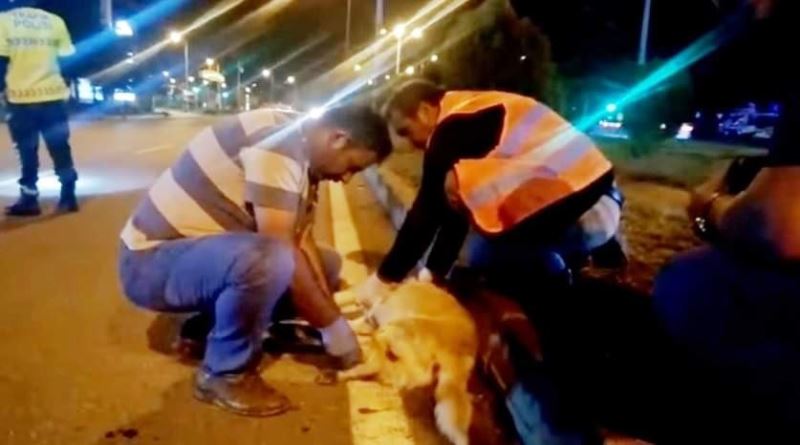 Çorum’un Sungurlu ilçesi’nde bir aracın çarpması sonucu yaralanan köpek için belediye çalışanları seferber oldu.