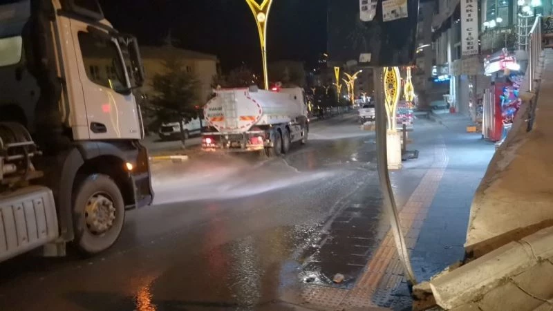 Hakkari Belediyesi ekipleri kent merkezini tazyikli suyla yıkayarak dezenfekte etti.