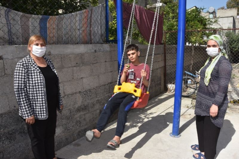 Ceyhan Belediyesi, evine uzak olduğu için parka gidemeyen engelli gencin evinin bahçesine park yaptı.