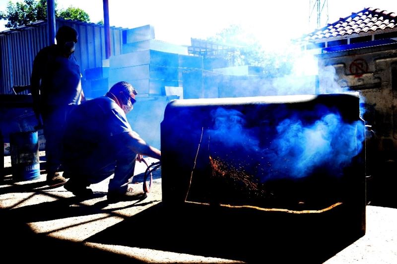 Eskiyen, çürüyen ve bozulan çöp konteynerleri ile çöp sepetleri, belediye Temizlik İşleri Müdürlüğü atölyesinde toplanarak yeniden tamir ediliyor ve belediye ekonomisine kazandırılıyor. Konteynerlerin ve çöp sepetlerinin çürüyen kısımları kesilip yenilendikten sonra boyaları tamamlanıyor. Başkan Necati Topaloğlu, yaptığı açıklamasında, belediye ekiplerinin temizliğe önem vererek çalıştıklarını söyledi. İlçedeki çöp konteynerleri ve çöp sepetlerinin bozuk ve eski olanların yenilendiğini belirten Topaloğlu, “Eskiyen ve çürüyen konteynerler ile çöp sepetlerini yeniliyoruz. Ekiplerimiz, atölyemizde hummalı şekilde çalışıyor. Çalışmalar sırasında eskiyen ve bozulan malzemeler de geri dönüşüme tabi tutuluyor ve önemli bir tasarruf sağlamış oluyoruz. Geri dönüşüm fabrikası gibi çalışarak belediyemizin ekonomisine de katkı sağlamış oluyoruz” diye konuştu.