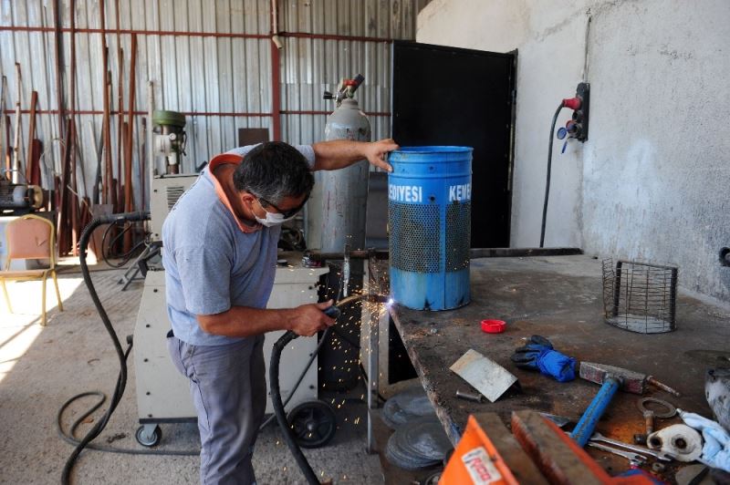 Kemer Belediye Temizlik İşleri Müdürlüğü ekipleri, eskiyen çöp konteynerlerini ve çöp sepetlerini tamir ederek, belediyenin ekonomisine katkı sağlıyor.
