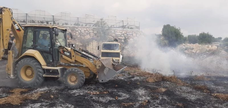 Belediye işçileri iş makineleriyle yangını söndürdü
