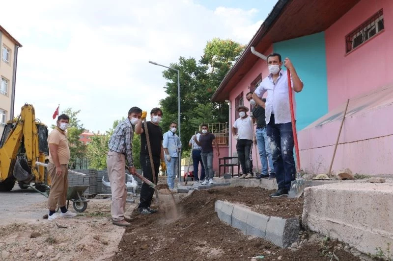 Sivas’ta bir grup öğretmen yüz yüze eğitimin başlayacağı günün hasreti ile görev yaptıkları okulu öğrencileri için hazırlıyor. Tuzlugöl Mahallesinde bulunan Şehit Cüneyt Erkan Ortaokulunda görev yapan yaklaşık 12 erkek öğretmen, eline kazmayı küreği alarak okulun bahçe düzenlemesini yaptı. Okulun içindeki duvarları da boyayan fedakar öğretmenlere ise kadın öğretmenler yemek, çay, içecek gibi ikramlık getirerek destek oldu.