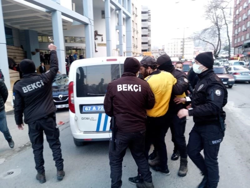 Zonguldak’ta işten çıkarıldığı iddia edilen temizlik işçisi, belediye önünde üzerine benzin döküp kendini yakmaya çalıştı.