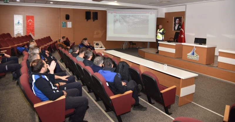 Kocaeli Valiliği’nin genelgesi doğrultusunda Kartepe Belediyesi personeline uygulamalı trafik eğitimi verildi. Eğitimde kış mevsiminde alınacak tedbirler anlatılırken, kamu bünyesinde görev yapan personellerin araç kullanımında örnek olmaları gerektiği vurgulandı.