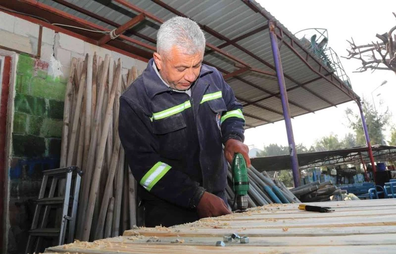 Üreten belediyecilik modeli ile yola devam ettiklerini dile getiren Akdeniz Belediye Başkanı Mustafa Gültak, "İstisnasız tüm birimlerimiz gece gündüz demeden çalışıp, üretiyor. Park ve Bahçeler Müdürlüğümüzdeki görevli arkadaşlarımız da belediyemize ait atölyelerde azami verim alınacak şekilde çaba sarf edip gerek yeşil alanlar için bank, kamelya, çöp kutusu üretimini gerekse oyun ve spor gruplarının bakım-onarım işlerinin planlı bir şekilde yürütülmesini sağlıyor" dedi.