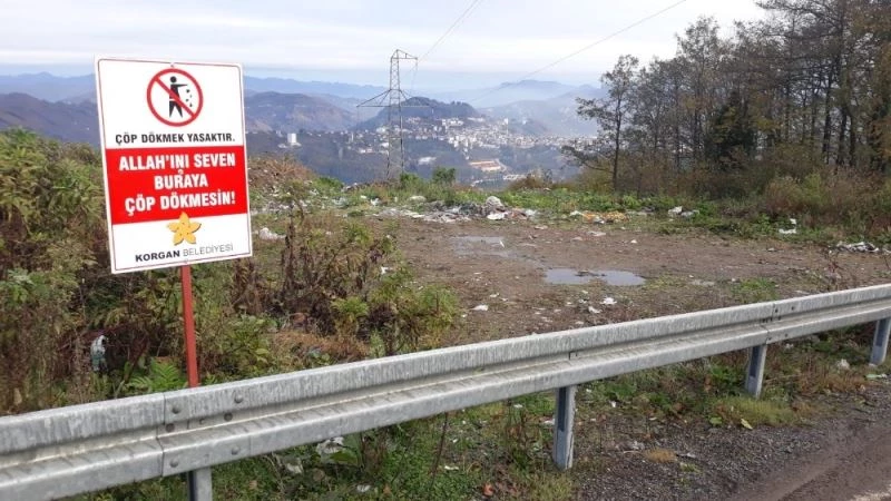Ordu’nun Korgan ilçesinde bulunan bir boş araziye çöp atanların önü alınamayınca “Allah’ını seven çöp atmasın” yazılı uyarı levhası asıldı.