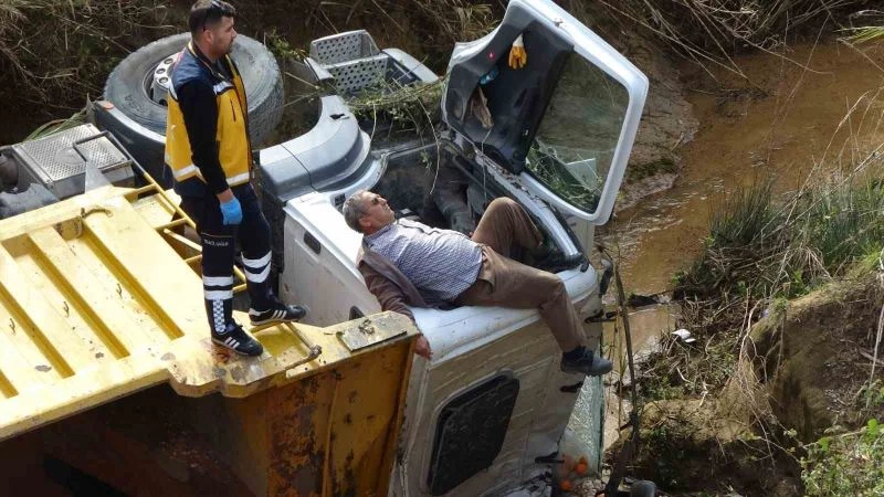 Belediyeye ait kamyon yol yapımı sırasında dereye uçtu: 1 yaralı