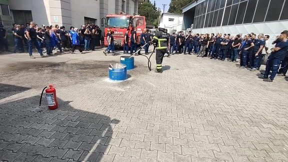 Hatay Büyükşehir Belediyesi itfaiye ekiplerinin katılımıyla bir filtre fabrikasının personeline bahçede yangın söndürme ve yangın güvenliği konularında eğitim verildi.