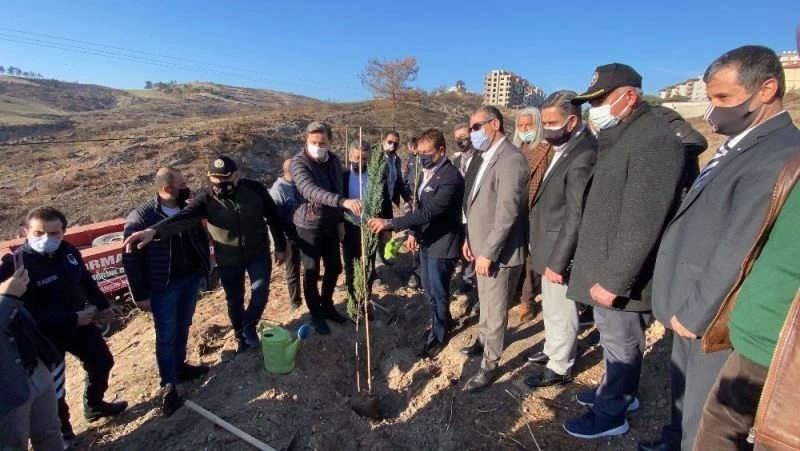 Belen’de yangında zarar gören alana Beşiktaş Kulübü yöneticileri, fidan dikti