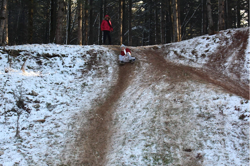 Çocuklar da kartopu oynayıp, kızak ve çuvallarla kayarak yarıyıl tatilinin keyfini çıkardı.