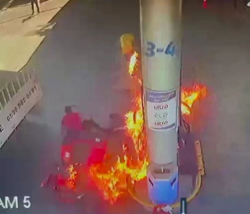 Olay, 27 Temmuz günü Büyük Bölcek Mahallesi Sanayi Kavşağında bulunan bir akaryakıt istasyonunda meydana geldi. Edinilen bilgiye göre, ATV motoru ile benzin almaya gelen Mustafa A. (25) benzin pompasına yanaştı ve deponun kapağını açtı. Pompaya gelen pompa görevlisi Mehmet Akbulut (27) pompayı alarak ATV’nin deposuna benzin vermeye başladı. ATV’nin üzerinden bile inmeyen ATV sürücüsü Mustafa A. dolum yapıldığı esnada elindeki çakmağı depoya yaklaştırarak çakmağı ateşledi. Ateşlemenin ardından önce ATV sonra da benzin pompası alevler içinde kaldı. Saniyeler içinde alev topuna dönen ATV ve pompadaki alevler pompa görevlisini ve ATV sürücüsünü de alev topuna çevirdi. Alevler içinde kalan ATV sürücüsü yanarak pompadan kaçmaya çalışırken tüm bu yaşananlar akaryakıt istasyonunun güvenlik kamerasına yansıdı. İstasyonda bulunan diğer akaryakıt pompası görevlileri yangın söndürme tüpleri ile önce yanan ATV sürücüsünü söndürdü sonra da ATV ile akaryakıt pompasını söndürdü. Akaryakıt istasyonu görevlilerinin anında müdahalesi ile büyük bir faciadan dönülürken, pompa görevlisi ve ATV sürücüsü yanarak yaralandı. ATV’nin arkasında yolcu olarak bulunan bir başka kişi de alevlerden son anda kaçarak kurtuldu.